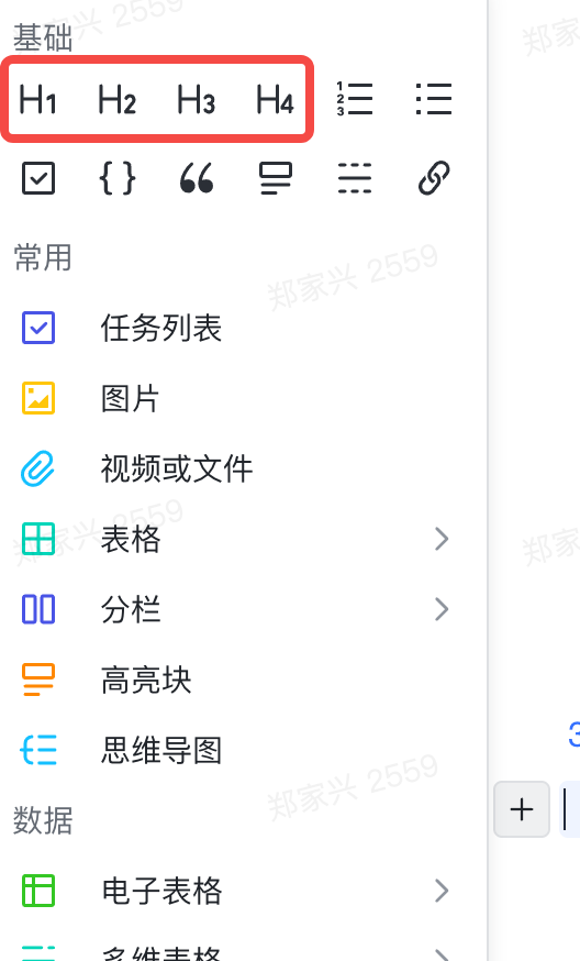 - 飞书文档,工具栏中的 「Hn 」功能