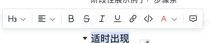 - 飞书文档,选中文字后才会在上方出现工具栏,否则不出现,不干扰用户阅读