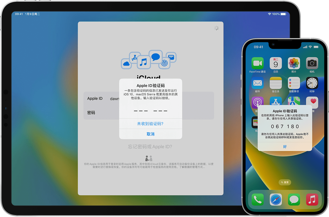 所谓双重验证 (opens new window)就是还需要提供自动显示在其他受信任设备上的六位验证码,或者受信任电话号码的手机验证码
